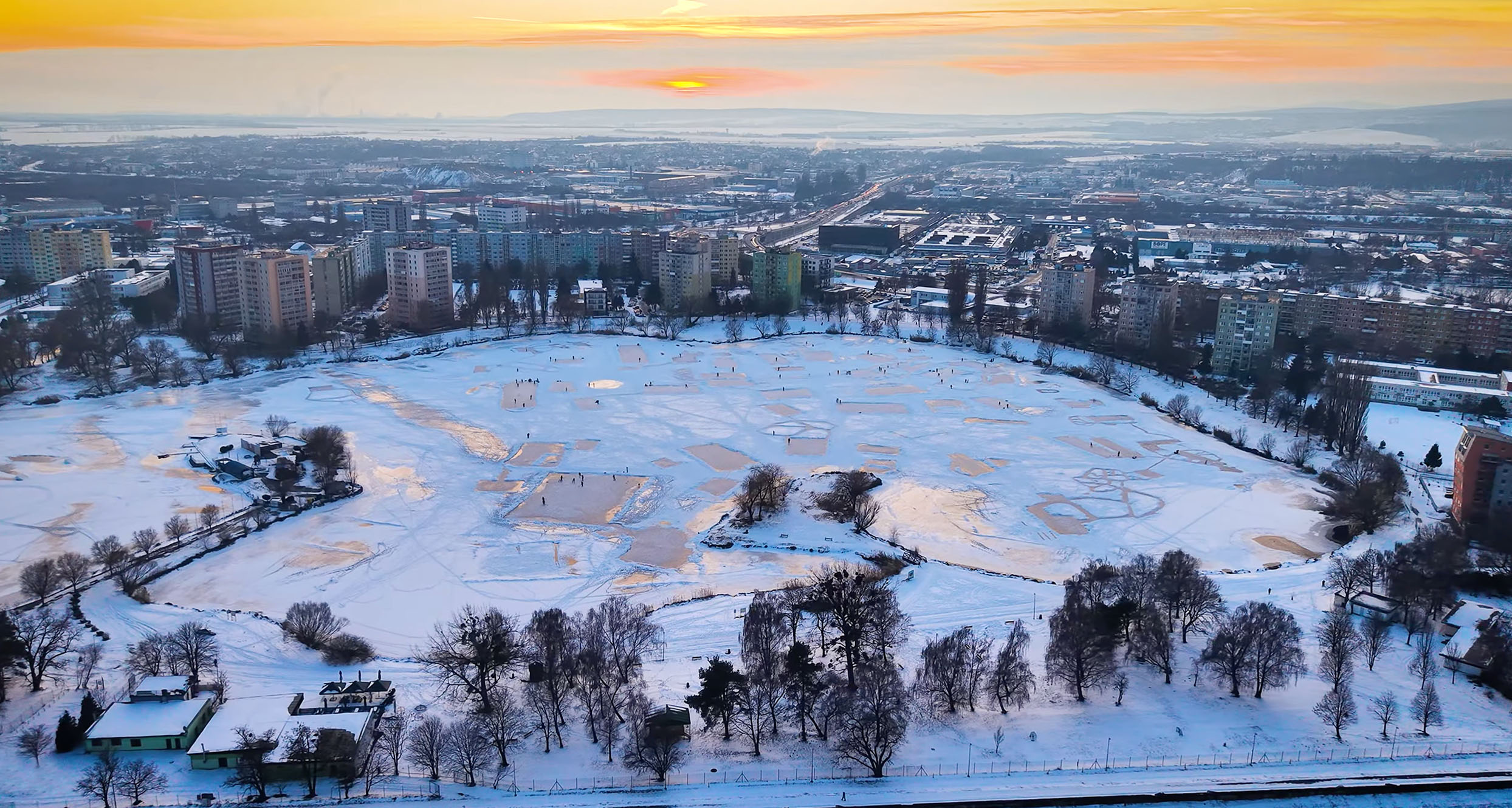 Fotografie zachytávajú atmosféru košického zamrznutého jazera dňa 6. 1. 2026. A ak máte možnosť, určite sa zastavte. Kým je ľad. A ak nebude, stále máme k dispozícii štadióny, ako napríklad úžasnú Arénu Sršňov, kde sa korčuľuje celoročne. Ale ruku na srdce. Ta „divočina“ na jazere má proste svoje čaro. Takže, ak najbližšie udrú mrazy, berte korčule, lopaty, sane, deti, ženy, termosky s čajom a volajte známych na mega-klzisko na košickom jazere.